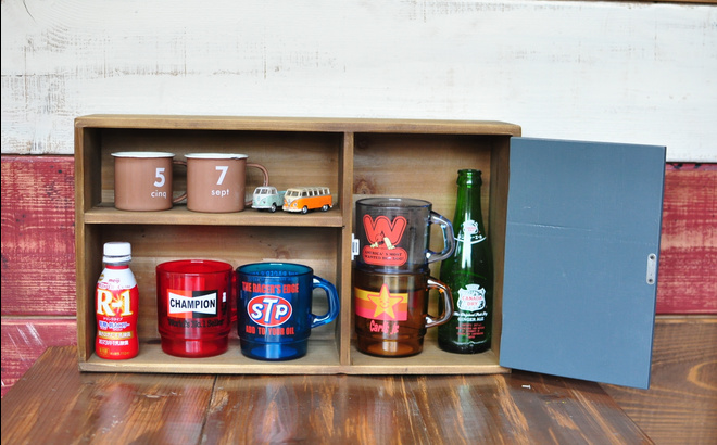 アンティーク風の加工を施したアメカジ 扉付き木製ラック。食器入れや小物入れなどに最適の扉付き木製ラック☆しっかり収納できてデザイン性&実用性もGOOD!!コンパクトサイズなので気まぐれで移動できるのがいいですね。