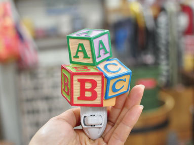 アメリカの子どもたちが遊ぶブロック。トイストーリーで有名になったABCブロックがランプになっちゃいました。この価格なのにスイッチつきだから使わないときでも差しっぱなしも可。コンセントのおしゃれも楽しめますよ