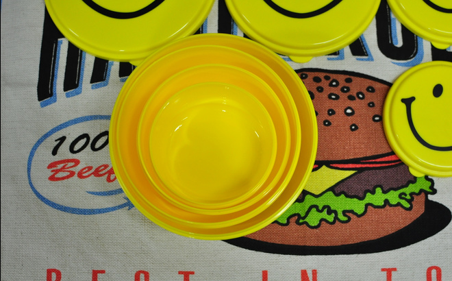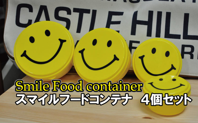 大人から子どもまで人気の可愛いスマイル!! にこちゃん。フードコンテナ(タッパー)の4個セットのアイテムで登場サイズが4タイプで構成されているので、その日の気分で選んでいただけます。
